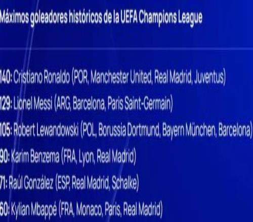 對姆巴佩來說,要成為歐冠射手王,難度則更大。在歐冠歷史射手榜上,C羅以140球排名榜首,梅西(129球)、萊萬(105球)、本澤馬(90球)以及勞爾(71球)分居其后,姆巴佩則以60球排名第6位。