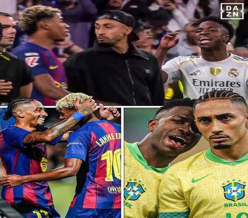賽后,在雙方發(fā)生激烈沖突,維尼修斯沖向亞馬爾的瞬間,拉菲尼亞也隨即沖向了他的國家隊(duì)隊(duì)友維尼修斯。隨后,兩人發(fā)生口角爭執(zhí)。