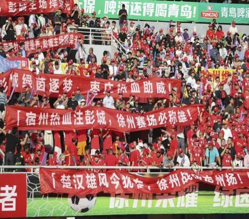 6月15日,來自徐州周邊城市的球迷們在現(xiàn)場觀賽。新華社發(fā)(白雪攝)