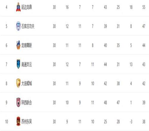 最后讓我們再來看一下本賽季中甲最終的積分榜情況。
